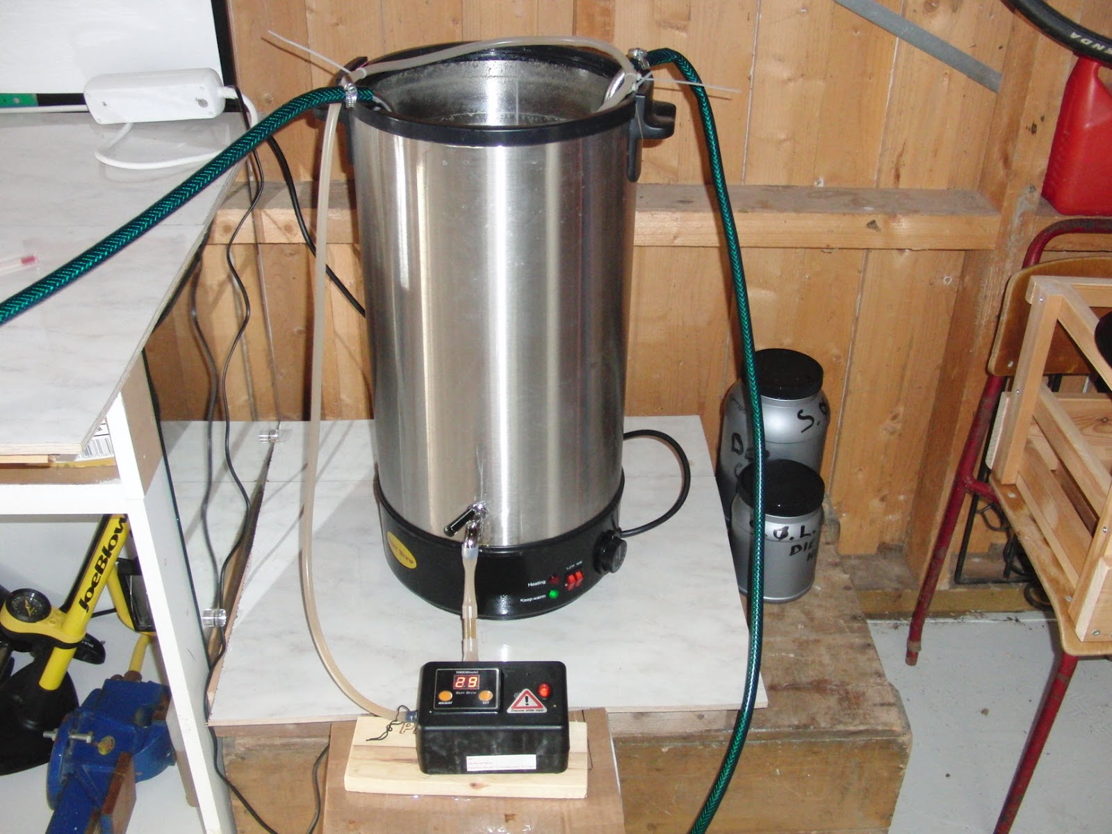 I forbindelse med planlagt lagerbrygging neste batch måtte utfordringer vedrørende gjæringstemperatur adresseres. Heldigvis hadde man et lite kjøleskap tilgjengelig, der gjæringskar av denne typen passet perfekt. Kjøleskapets termostat er dog maks 7 °C, så her måtte en temperaturkontroller inn i bildet. Vi landet på denne, bestilt fra bryggselv.no: